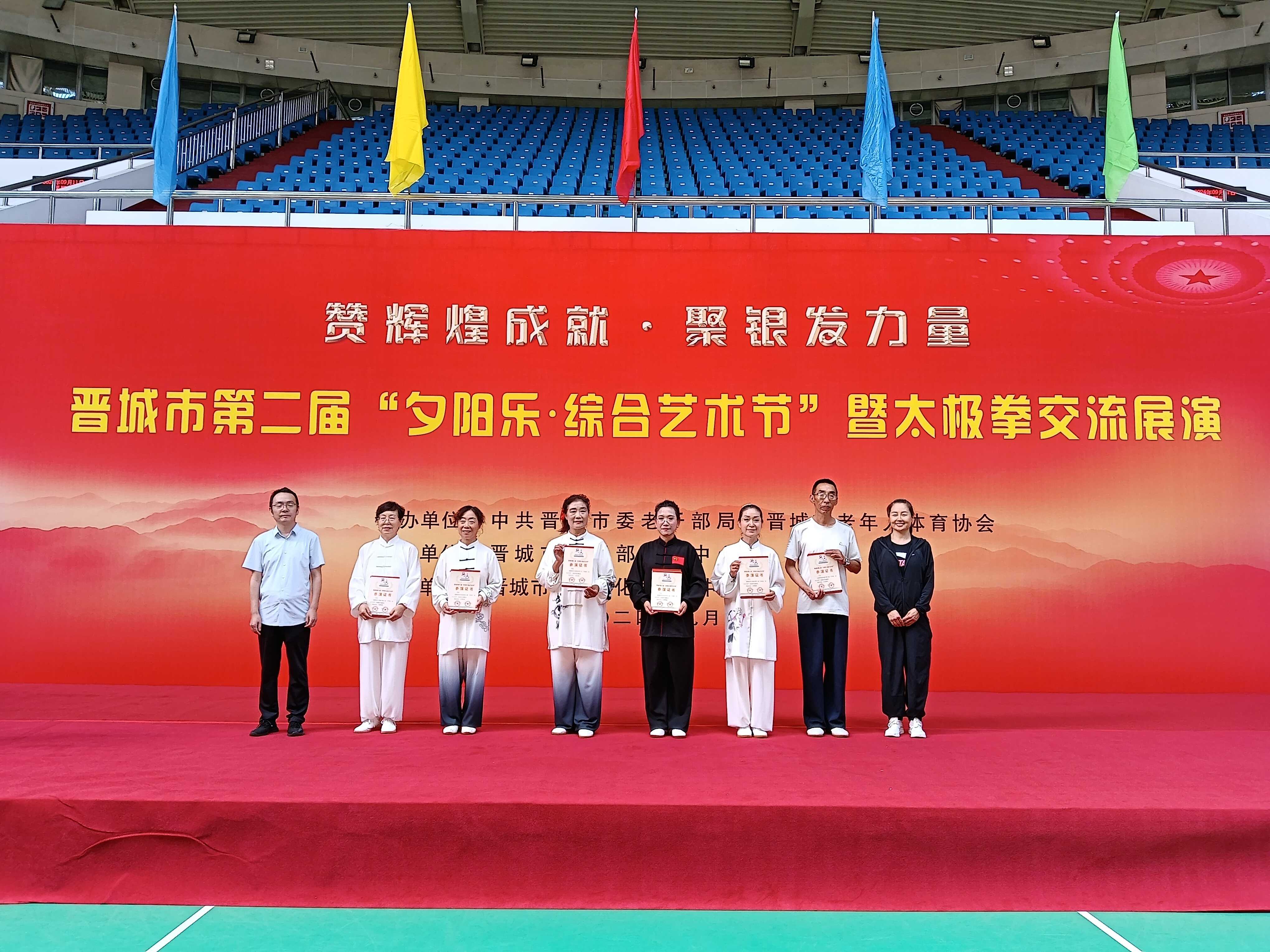 为贯彻落实党的二十届三中全会精神,不断满足全市广大老年人日益增长的精神文化与体育健身的需要,9月11日上午,由市委老干部局、市老年人体育协会主办,老干部活动中心承办的第二届“夕阳乐·综合艺术节”暨太极拳、健身气功比赛在我市工人文化宫成功举行,这也标志着晋城市第二“夕阳乐·综合艺术节”正式拉开帷幕。这是满足全市老年朋友对美好生活向往与追求的一场文体盛宴。各有关方面领导出席了开幕式。市老体协各健身队、市老年大学分别展示了柔力球、健身球操、二胡和舞蹈等精彩的文体项目。