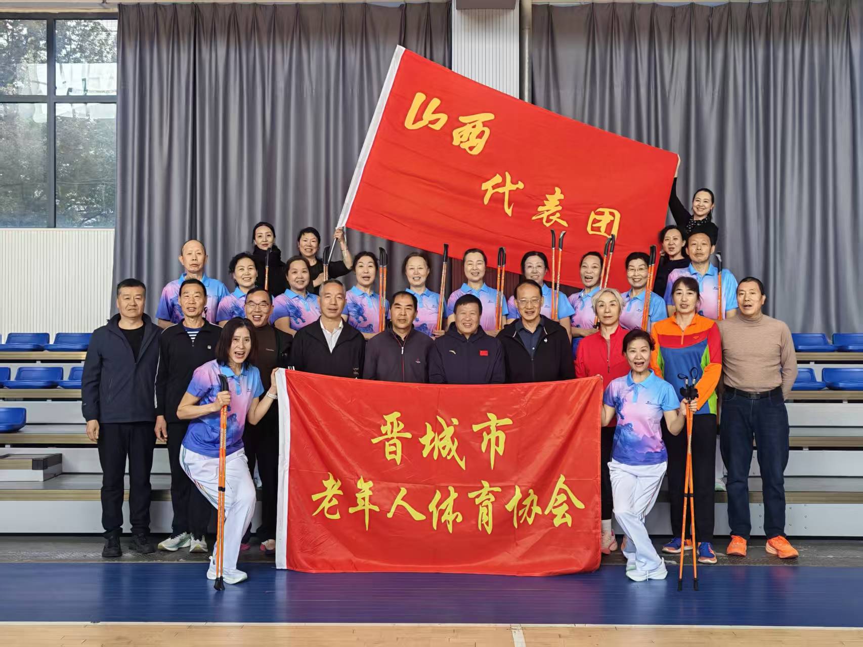 近年来,晋城市老年人体育协会在持杖健走及其他老年体育项目中持续发力,取得了一系列优异成绩,2023年持杖健走队参加第四届全国老年人体育健身大会持杖健走交流活动时,荣获户外穿越团体优胜奖、4x400米场地接力优秀奖、个人穿越4个优胜奖;持杖操规定套路、自编套路两个优秀奖,还获得团体总成绩优胜奖和道德风尚奖六块集体奖牌。